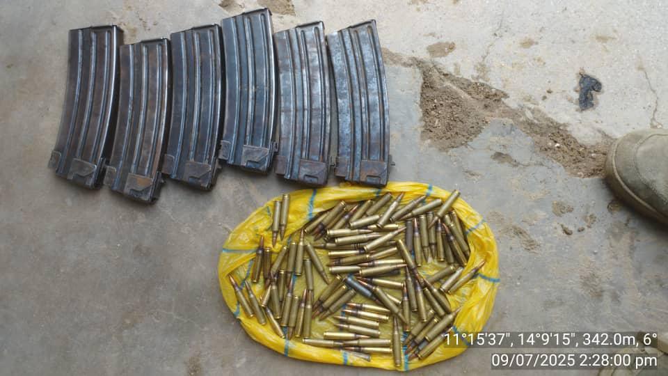On July 9, joint clearance operations at Tangalanga and Bula Marwa led to a heavy firefight, eliminating three insurgents and destroying their camps. Troops recovered six AK-47 rifles, 47 magazines, and ninety rounds of 7.62mm ammunition. Additionally, ambushes at Ngailda, Manjim, and Wulle villages resulted in the elimination of six terrorists, with motorcycles and bicycles recovered.