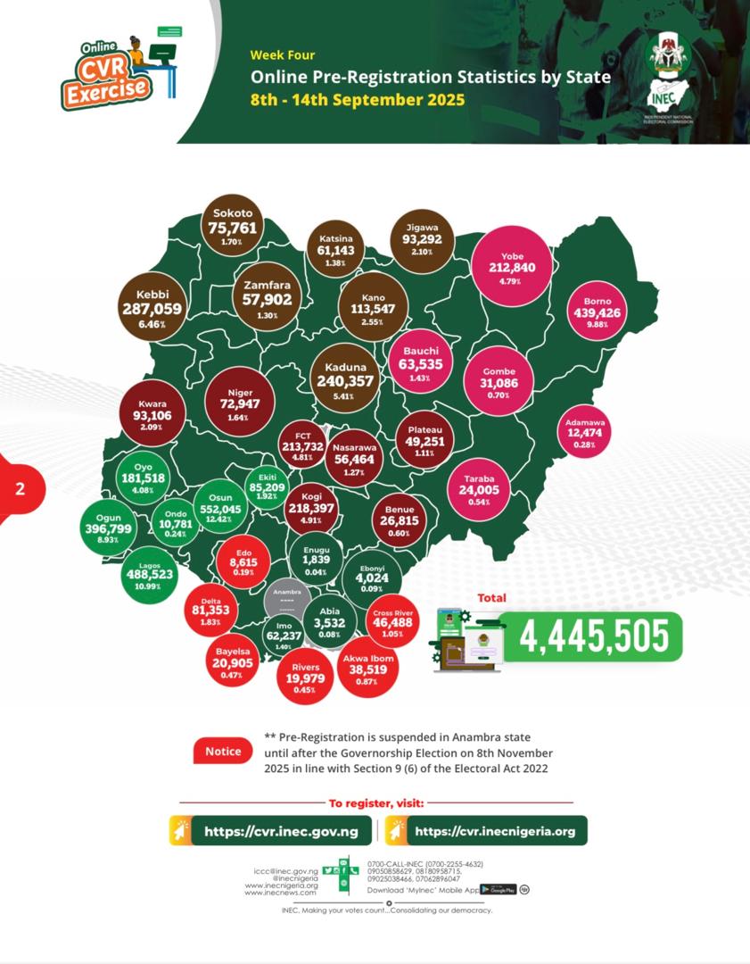 Nigerian Voter Registration Surpasses 4.4 Million Online, with Strong Youth and Female Turnout