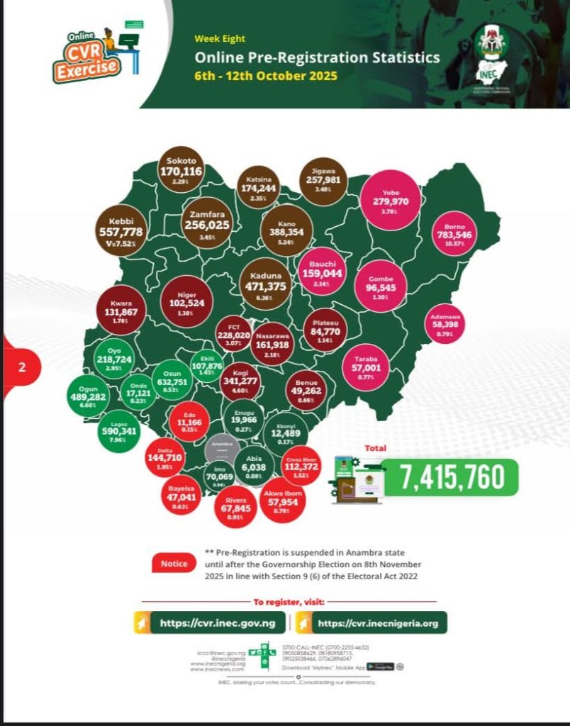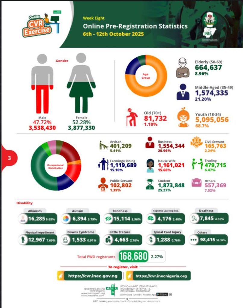 The electoral commission also provided an update on the preliminary figures from its continuous voter registration (CVR) portal for the following week (October 6–12, 2025). The platform recorded over 7.4 million total pre-registrants, with students making up a large portion of the applicants, at over 1.8 million.